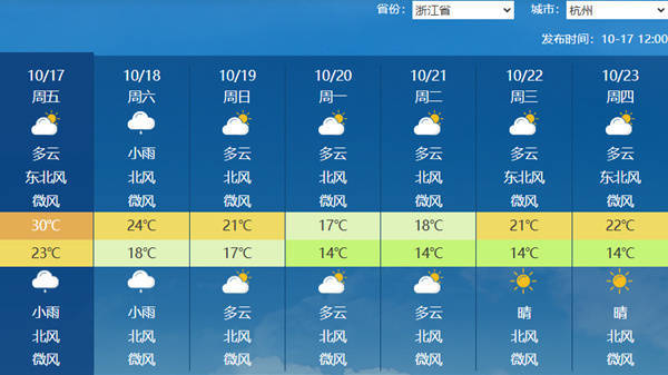 r央视网消息:据中国天气网消息,近期,南方多地秋老虎盛行,截至今天,多地气温仍偏高。明天(10月18日)起,今年下半年来最强冷空气将陆续给南方大部带来显著降温,多地将收到迟迟未至的秋意。