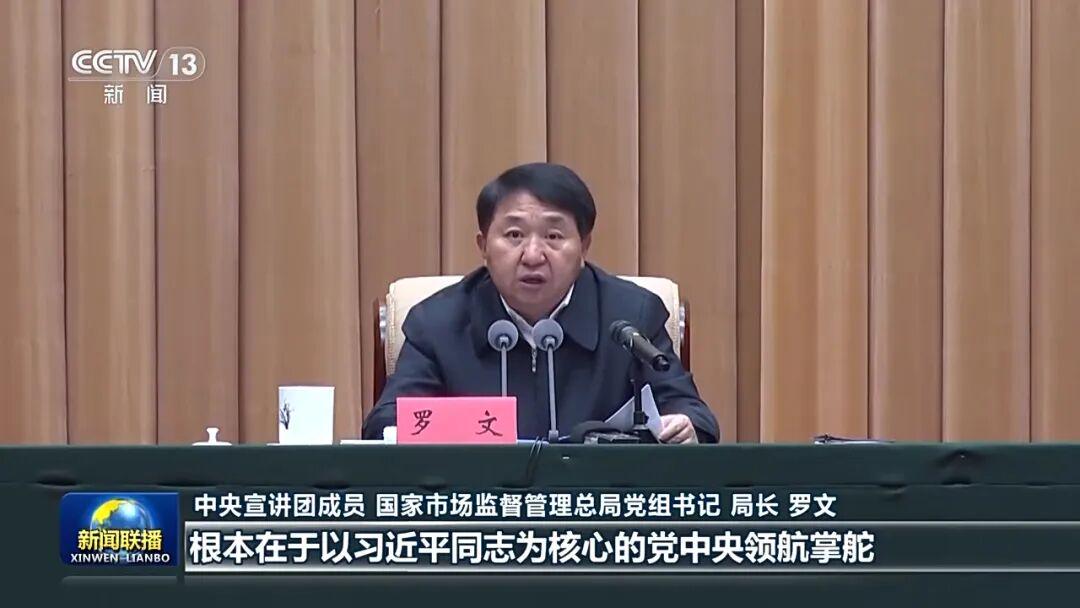 中央宣讲团成员 国家市场监督管理总局党组书记 局长 罗文:过去五年,我国经济实力、科技实力、综合国力跃上新台阶,中国式现代化迈出新的坚实步伐,这些重大成就的取得,根本在于以习近平同志为核心的党中央领航掌舵,在于习近平新时代中国特色社会主义思想科学指引。