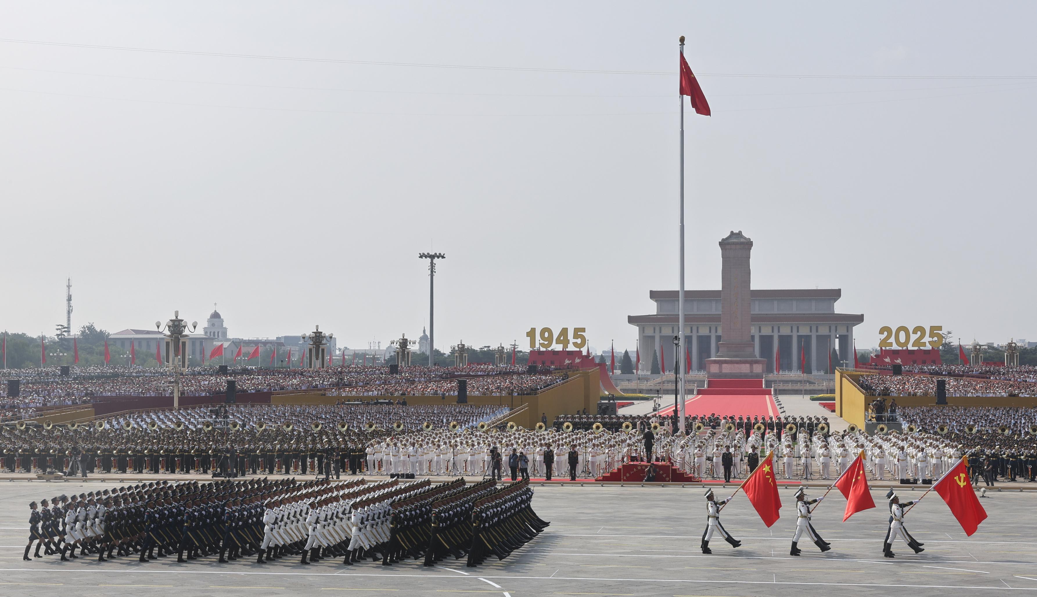 9月3日,纪念中国人民抗日战争暨世界反法西斯战争胜利80周年大会在北京隆重举行。这是标兵就位。新华社记者 刘潺 摄