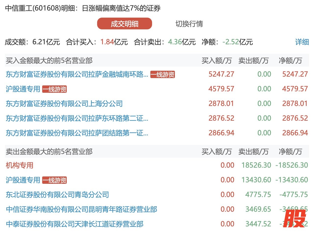 中信重工今日涨停 一机构专用席位净卖出1.85亿元中信重工今日涨停 一机构专用席位净卖出1.85亿元